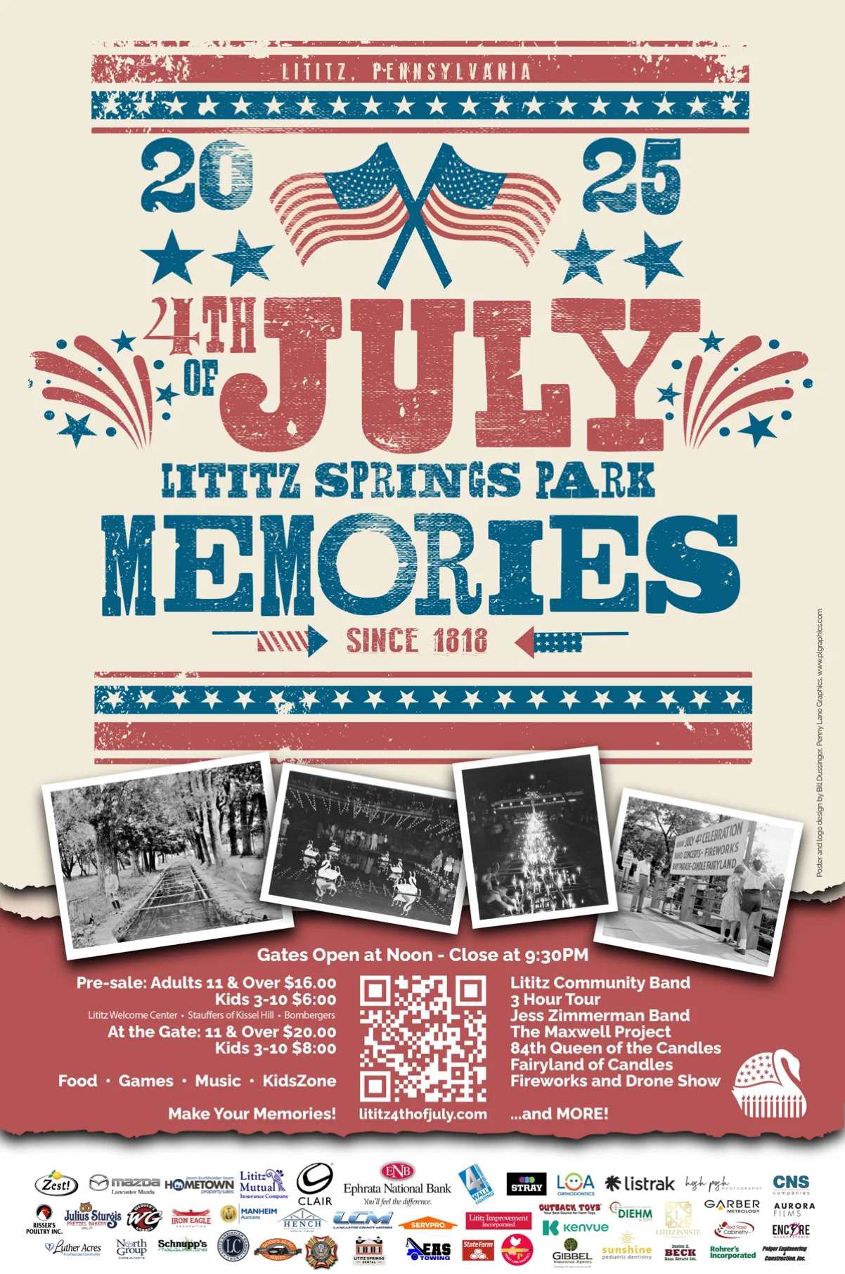 The 2025 Lititz Springs 4th of July celebration is the second longest consecutive year celebration in the United States. This was the 208th event since 1818. The event was themed around MEMORIES.